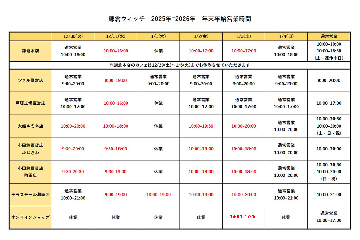 年末年始営業時間のお知らせ