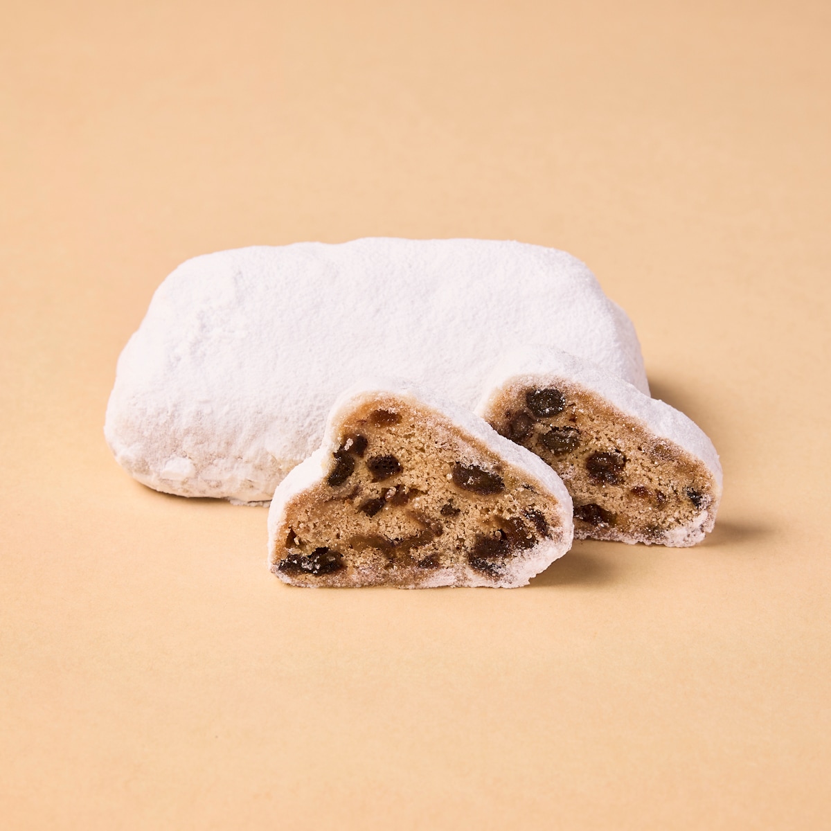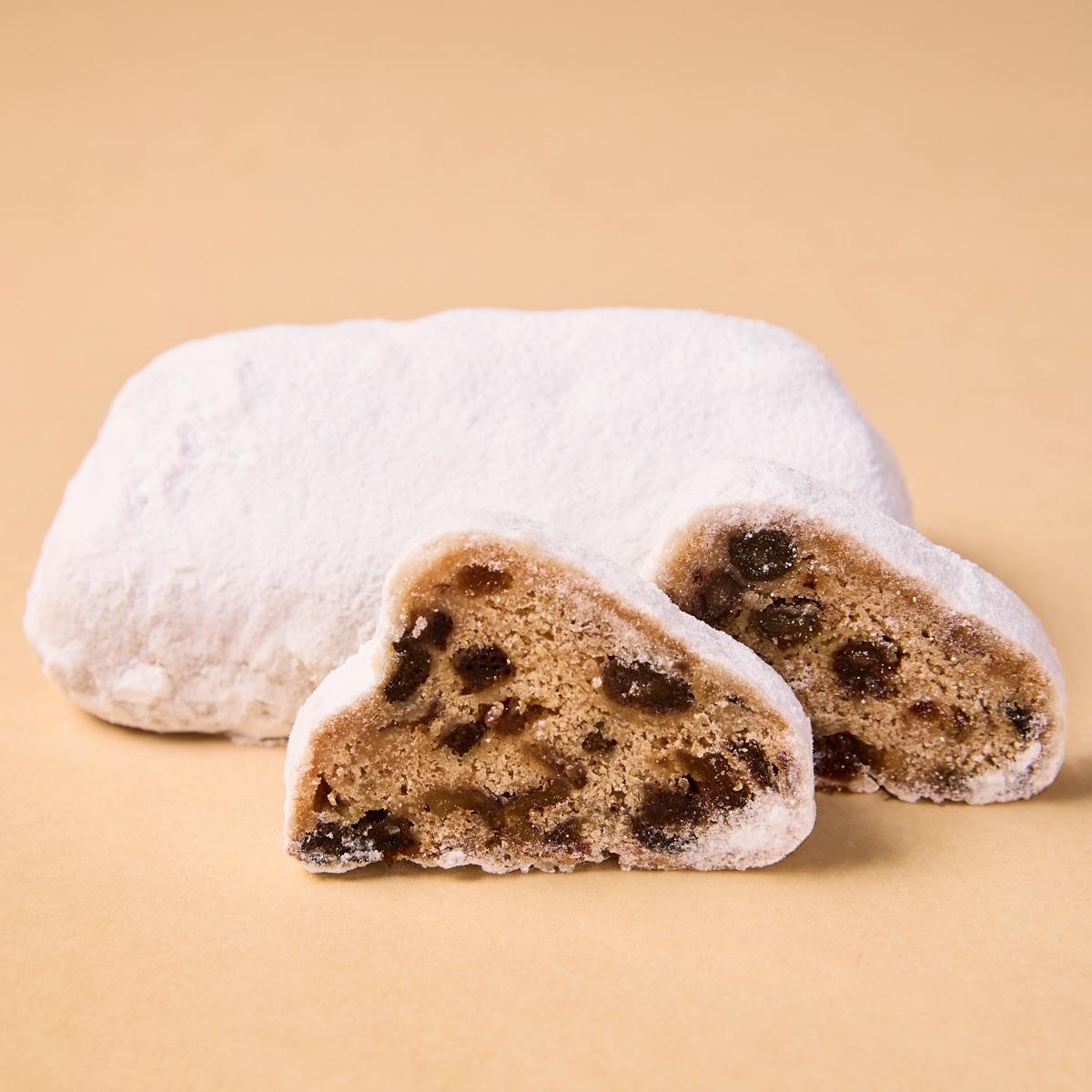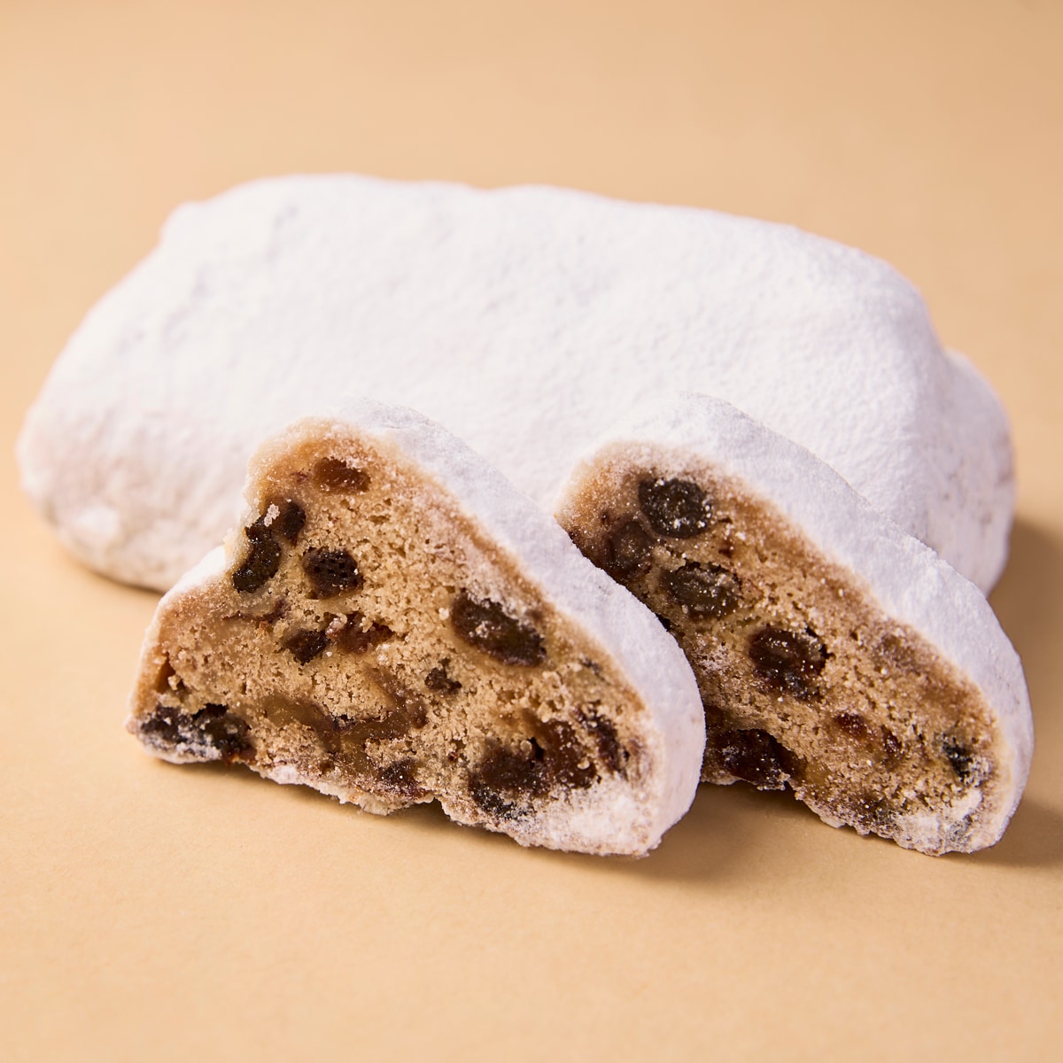 小麦粉(国内製造)、バター、フルーツ砂糖漬け、レーズン、牛乳、くるみ、きび糖、卵黄、ラム酒、グラニュー糖、粉糖、はちみつ、パン酵母、塩、シナモン/香料、乳化剤(一部に小麦・乳成分・卵・アーモンド・くるみ・りんご・オレンジを含む)