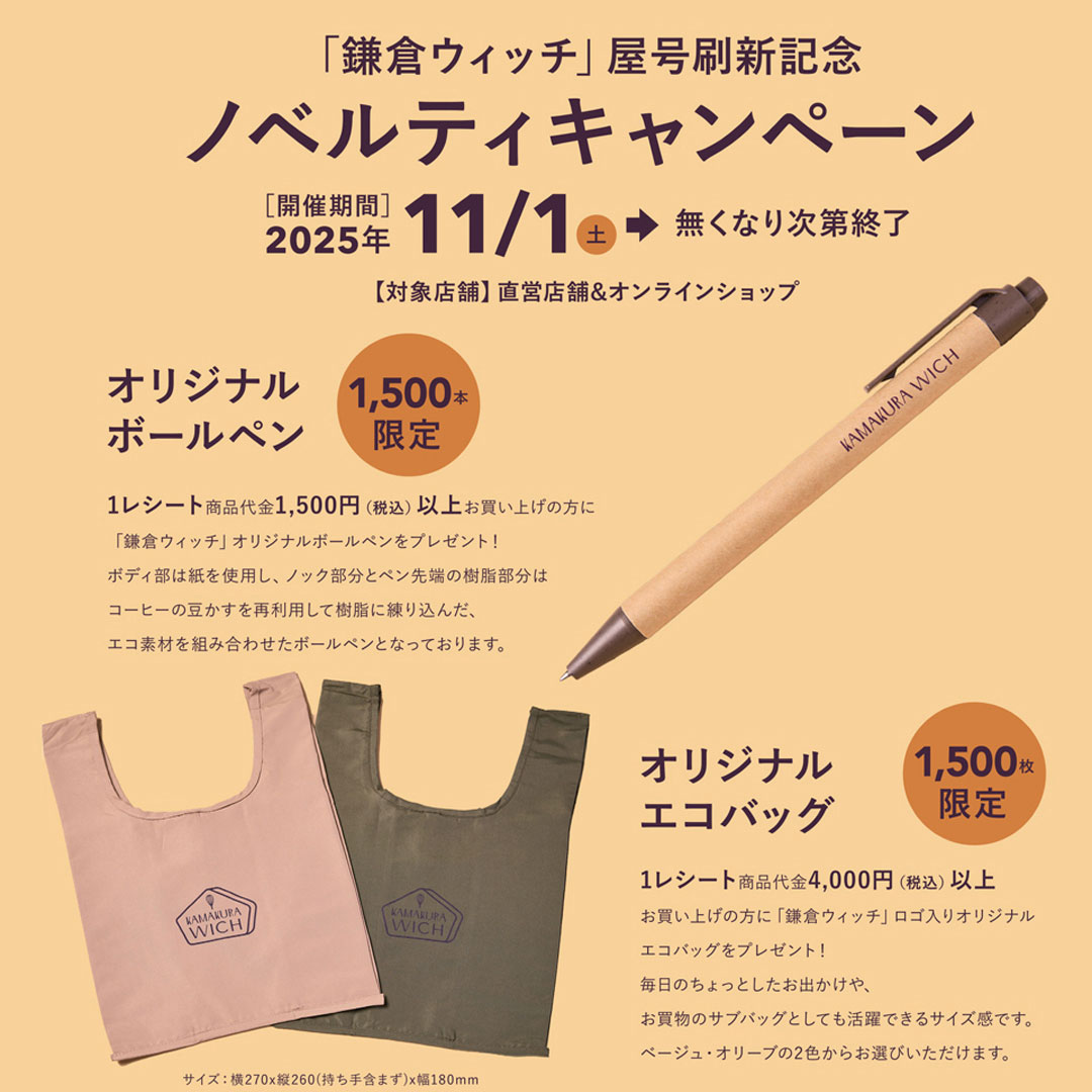 ①先着50名様に鎌倉ウィッチのロゴ入り保冷バッグをプレゼント!(6号サイズが入ります)